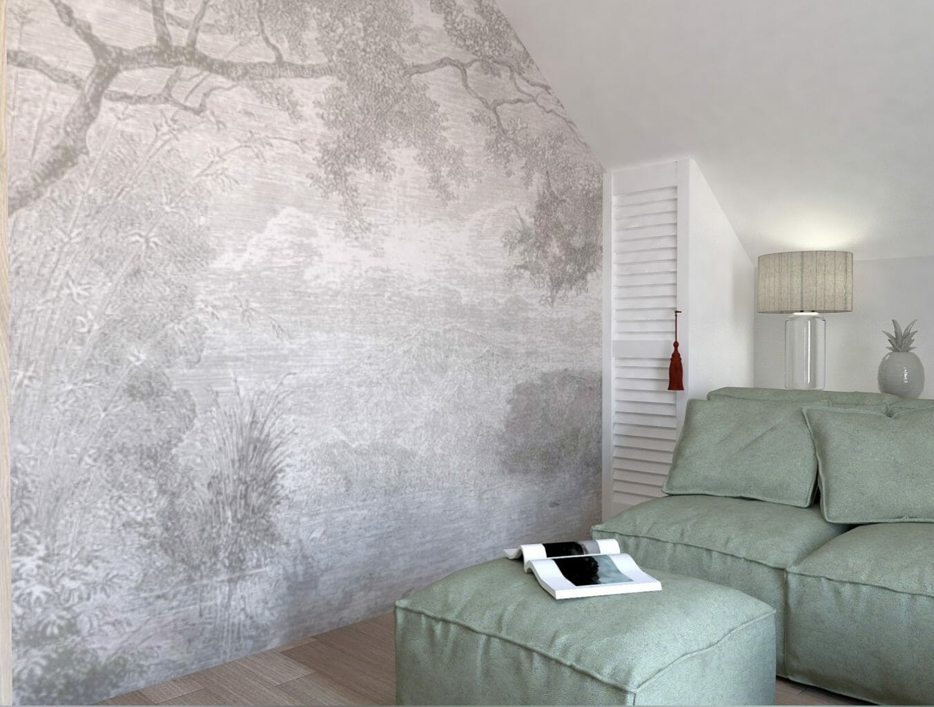 Wyjątkowo na jednej ze ścian zaproponowałam tapetę.